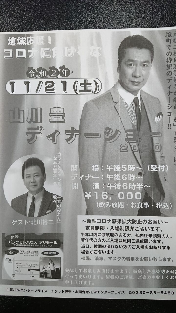 そんな今日は茨城県の猿島郡境町の会場にて「山川豊ディナーショー」の、ゲスト出演します🎵