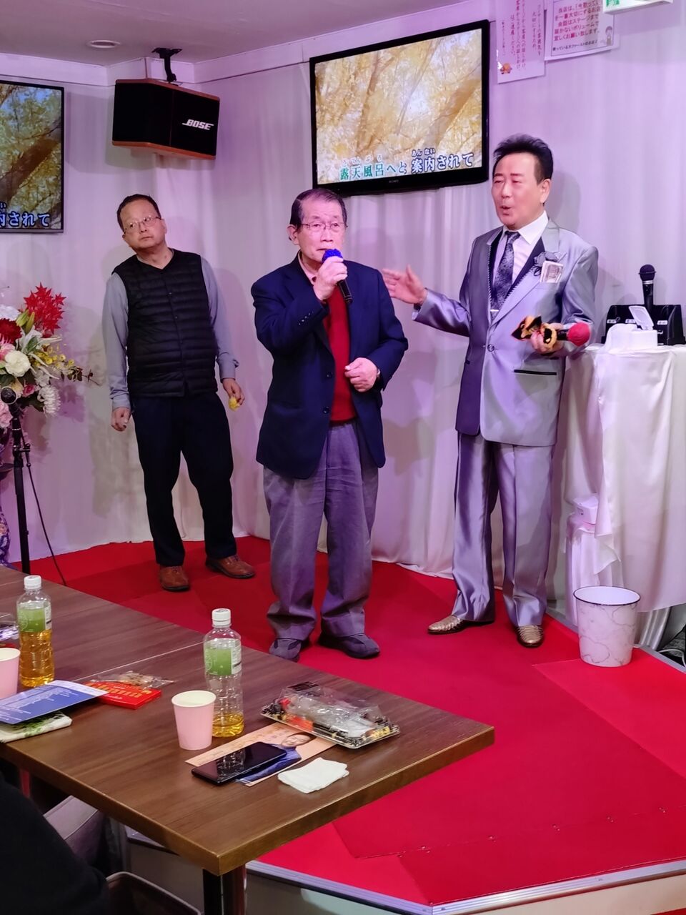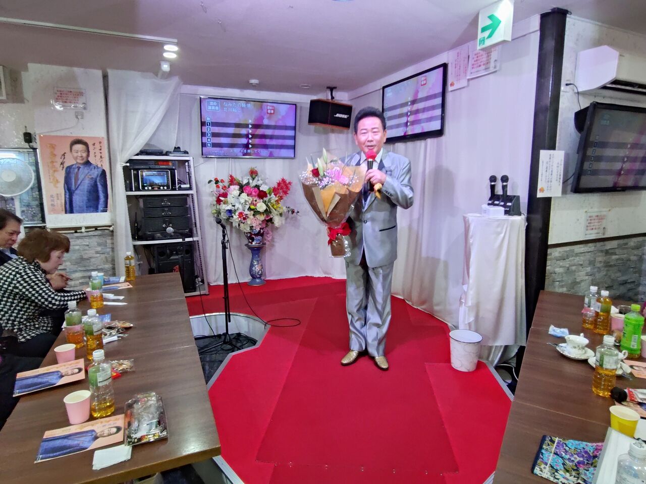 早速、花束など色々と頂戴しまして和やかな雰囲気でお客様の近くでも唄いました🎵